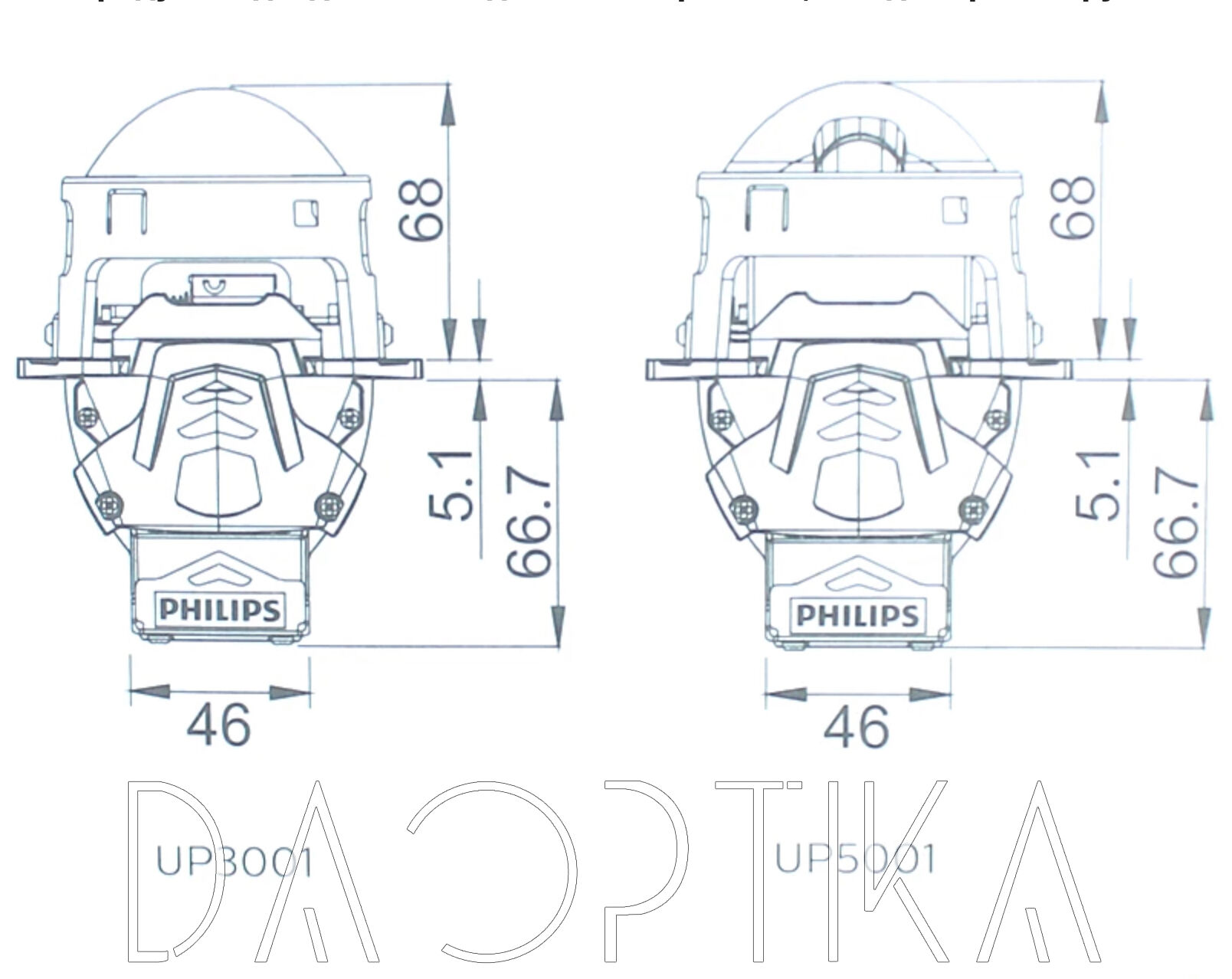 Cветодиодные BiLed линзы Philips UP5001 65W/90W 12V 6000K