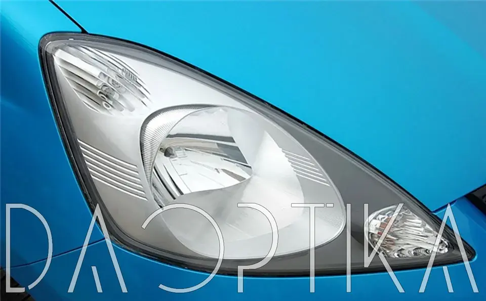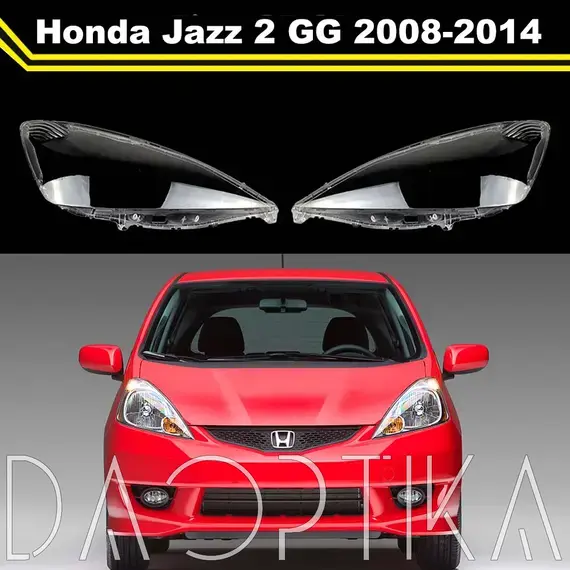 Стекло левой фары из оптического поликарбоната с защитным лаком для замены оригинального стекола фары на Honda Jazz 2008-2014 2 поколение