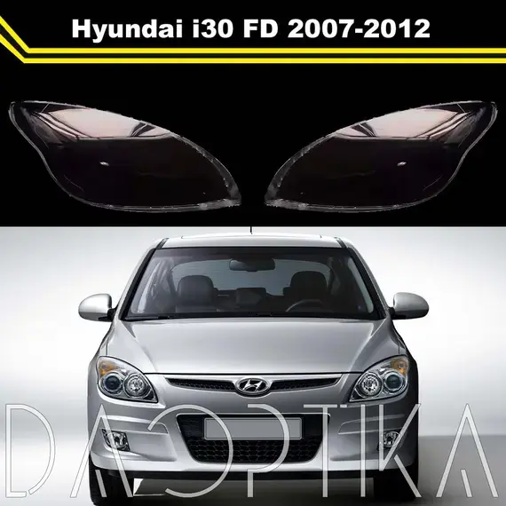 Высококачественные стекла фар из оптического поликарбоната с защитным УФ-лаком идеально подходят для замены оригинальных стекол фар на Hyundai i30 2007-2012 FD