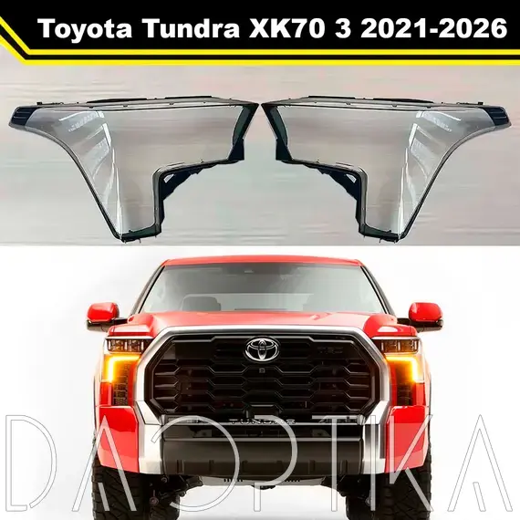 Высококачественные стекла фар из оптического поликарбоната с защитным УФ-лаком идеально подходят для замены оригинальных стекол фар на Toyota Tundra 2021-2026 XK70 3 поколение
