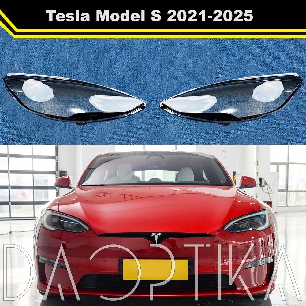 Стекло правой фары из оптического поликарбоната с защитным лаком для замены оригинального стекола фары на Tesla Model S 2021-2025 1 поколение [2-й рестайлинг]