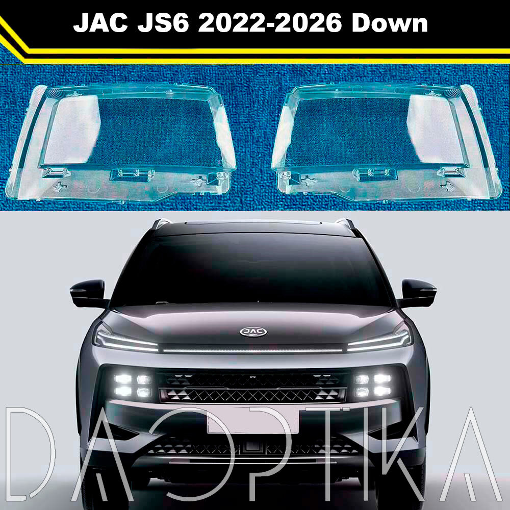 Стекло правой фары из оптического поликарбоната с защитным лаком для замены оригинального стекола фары на JAC JS6 2022-2026 1 поколение