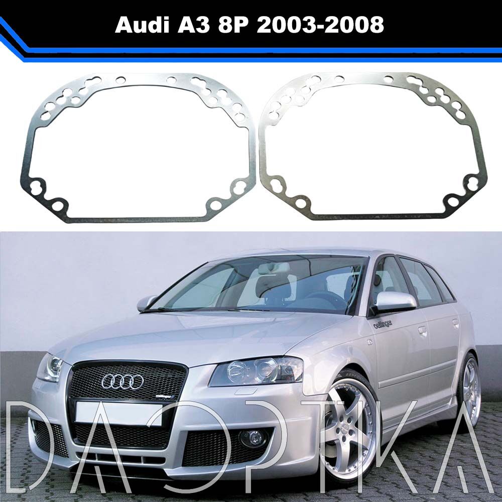 Переходные рамки для установки Bi-LED линз в фары Audi A3 предназначены для точной и безопасной замены штатной оптики без нарушения конструкции фары. Подходят для моделей Audi A3 8P 2003-2008 годов выпуска.
