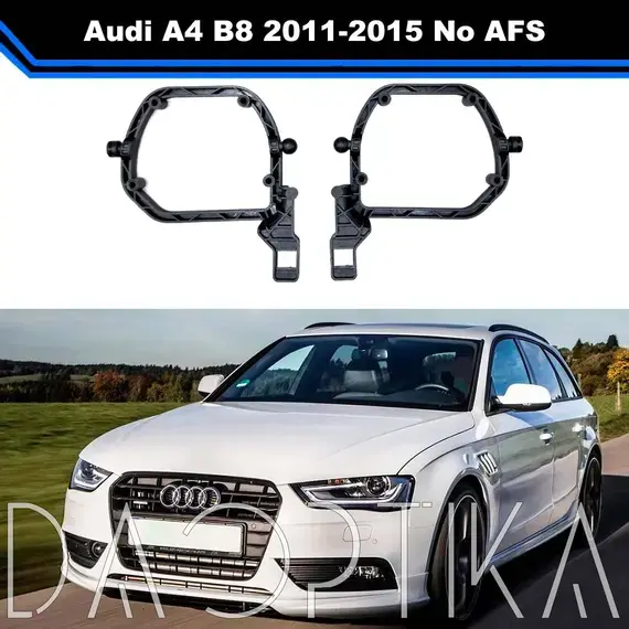 Переходные рамки для установки Bi-LED линз в фары Audi A4 предназначены для точной и безопасной замены штатной оптики без нарушения конструкции фары. Подходят для моделей Audi A4 B8 рест 2011-2015 годов выпуска.