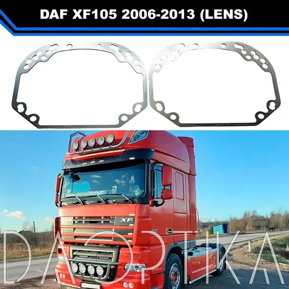 Переходные рамки для установки Bi-LED линз в фары DAF XF105 предназначены для точной и безопасной замены штатной оптики без нарушения конструкции фары. Подходят для моделей DAF XF105 2006-2013 годов выпуска.