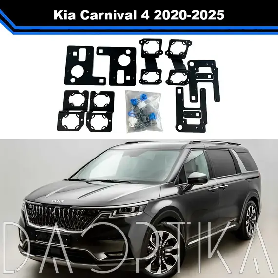 Переходные рамки для установки Bi-LED линз в фары Kia Carnival предназначены для точной и безопасной замены штатной оптики без нарушения конструкции фары. Подходят для моделей Kia Carnival 4 2020-2025 годов выпуска.