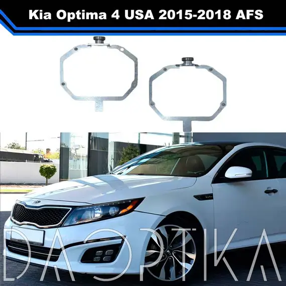 Переходные рамки для установки Bi-LED линз в фары Kia Optima предназначены для точной и безопасной замены штатной оптики без нарушения конструкции фары. Подходят для моделей Kia Optima 4 USA 2015-2018 годов выпуска.