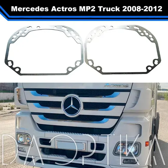 Переходные рамки для установки Bi-LED линз в фары Mercedes Actros предназначены для точной и безопасной замены штатной оптики без нарушения конструкции фары. Подходят для моделей Mercedes Actros MP2 Truck 2008-2012 годов выпуска.