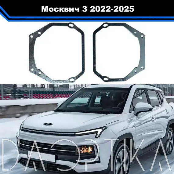 Переходные рамки для установки Bi-LED линз в фары Москвич 3 предназначены для точной и безопасной замены штатной оптики без нарушения конструкции фары. Подходят для моделей Москвич 3 2022-2025 годов выпуска.