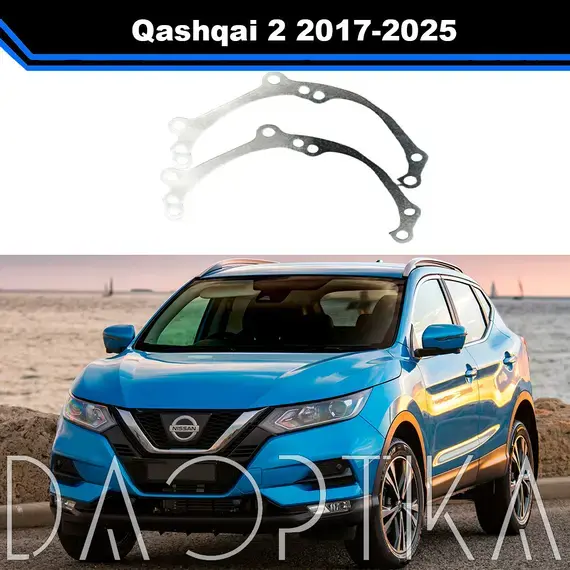 Переходные рамки для установки Bi-LED линз в фары Nissan Qashqai предназначены для точной и безопасной замены штатной оптики без нарушения конструкции фары. Подходят для моделей Nissan Qashqai 2 рест 2017-2025 годов выпуска.