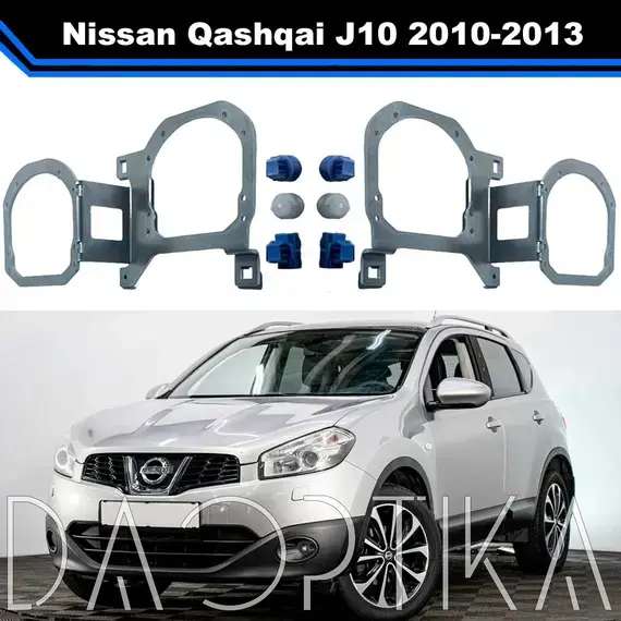 Переходные рамки для установки Bi-LED линз в фары Nissan Qashqai предназначены для точной и безопасной замены штатной оптики без нарушения конструкции фары. Подходят для моделей Nissan Qashqai J10 рест 2010-2013 годов выпуска.