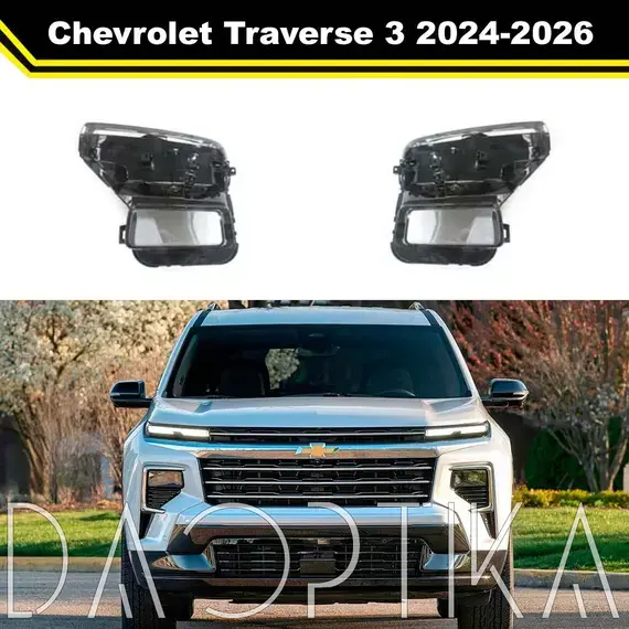 Высококачественные стекла фар из оптического поликарбоната с защитным УФ-лаком идеально подходят для замены оригинальных стекол фар на Chevrolet Traverse 2024-2026 3 поколение