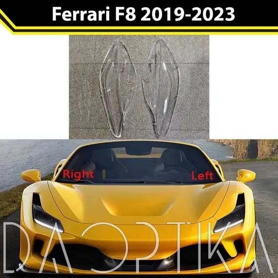 Высококачественные стекла фар из оптического поликарбоната с защитным УФ-лаком идеально подходят для замены оригинальных стекол фар на Ferrari F8 2019-2023