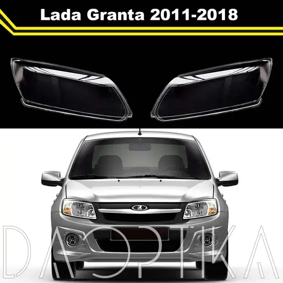 Высококачественные стекла фар из оптического поликарбоната с защитным УФ-лаком идеально подходят для замены оригинальных стекол фар на Lada (ВАЗ) Granta (Гранта) 2011-2018 1 поколение