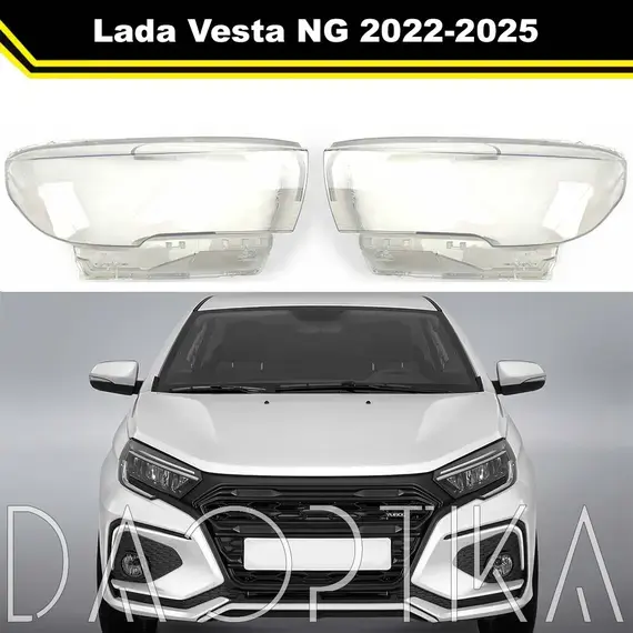 Высококачественные стекла фар из оптического поликарбоната с защитным УФ-лаком идеально подходят для замены оригинальных стекол фар на Lada (ВАЗ) Vesta (Веста) 2022-2025 1 поколение [рестайлинг] NG