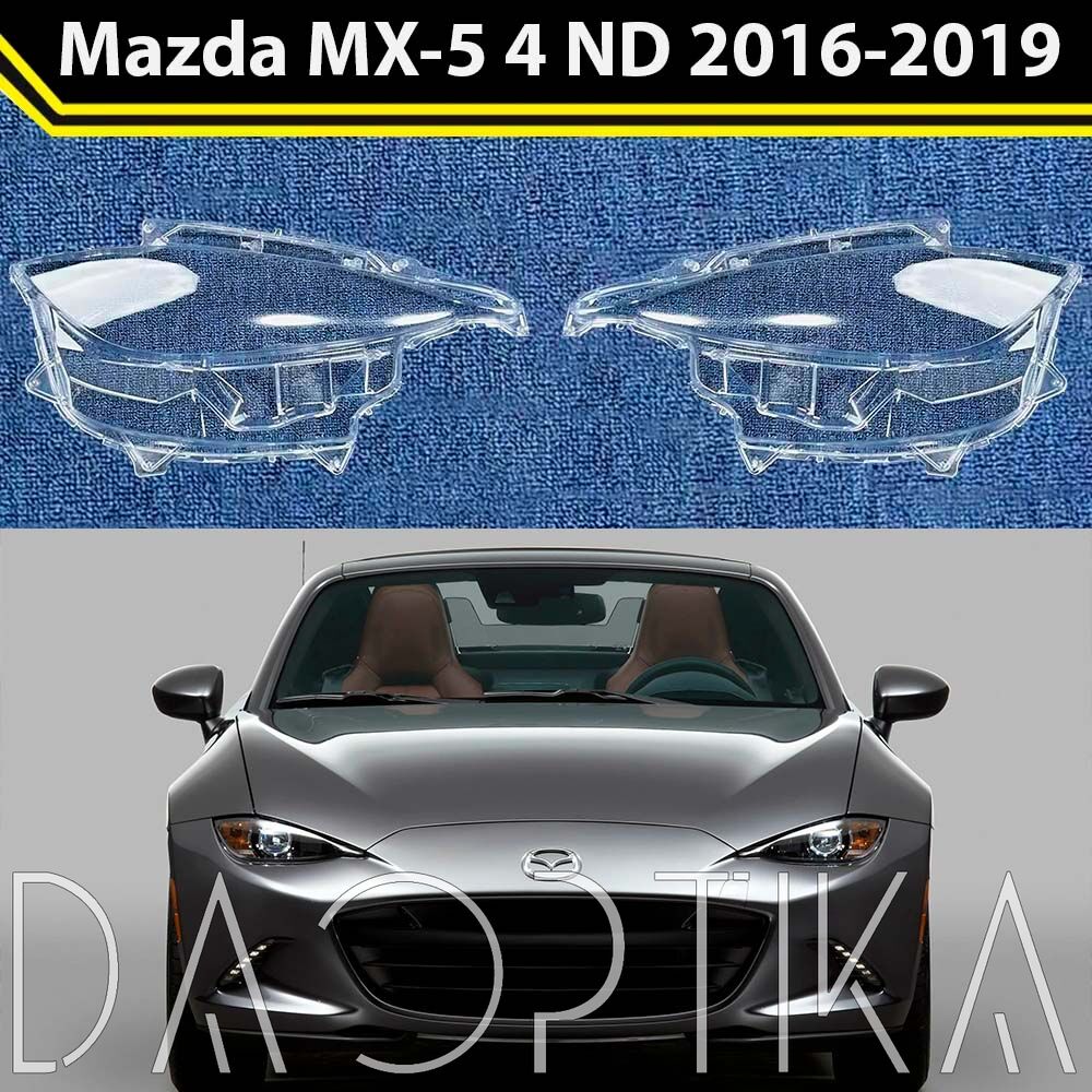 Высококачественные стекла фар из оптического поликарбоната с защитным УФ-лаком идеально подходят для замены оригинальных стекол фар на Mazda MX-5 2016-2019 ND