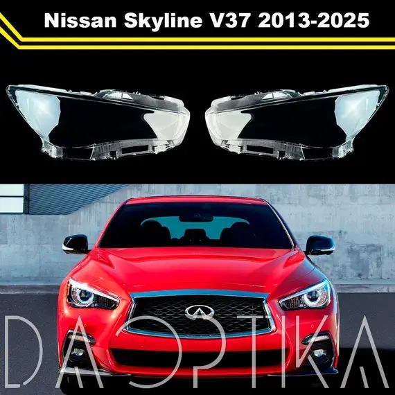 Высококачественные стекла фар из оптического поликарбоната с защитным УФ-лаком идеально подходят для замены оригинальных стекол фар на Nissan Skyline 2013-2025 V37