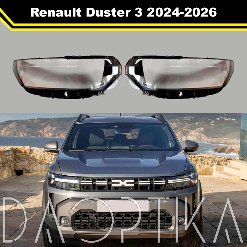 Высококачественные стекла фар из оптического поликарбоната с защитным УФ-лаком идеально подходят для замены оригинальных стекол фар на Renault Duster 2024-2026 3 поколение