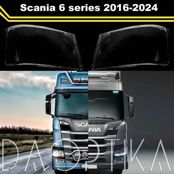 Высококачественные стекла фар из оптического поликарбоната с защитным УФ-лаком идеально подходят для замены оригинальных стекол фар на Scania P,G,R,S,Т 2016-2024 6 поколение