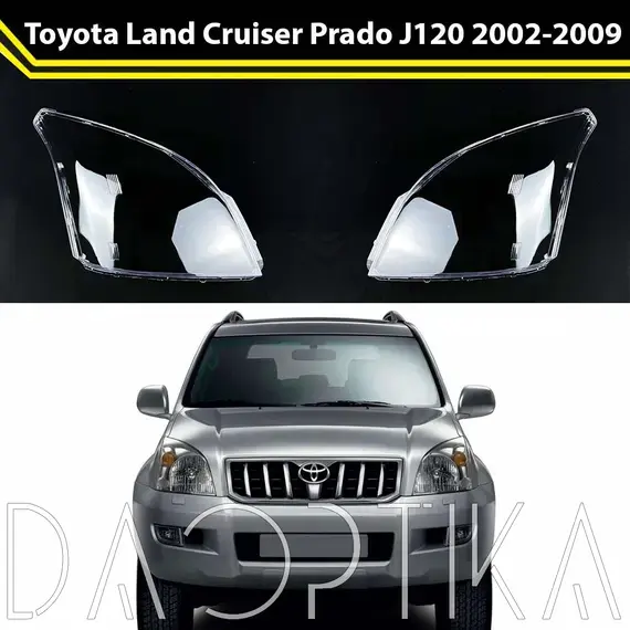 Высококачественные стекла фар из оптического поликарбоната с защитным УФ-лаком идеально подходят для замены оригинальных стекол фар на Toyota Land Cruiser Prado 2002-2009 J120