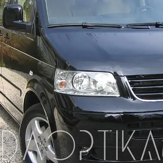 Высококачественные стекла фар из оптического поликарбоната с защитным УФ-лаком идеально подходят для замены оригинальных стекол фар на Volkswagen Multivan 2003-2009 T5