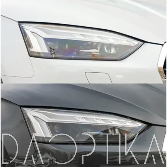 Стекло левой фары из оптического поликарбоната с защитным лаком для замены оригинального стекола фары на Audi A5 2019-2024 F5 [рестайлинг]