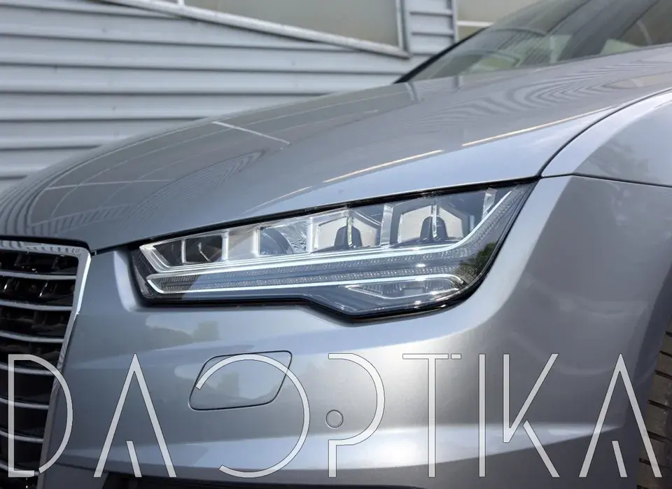 Стекло левой фары из оптического поликарбоната с защитным лаком для замены оригинального стекола фары на Audi A7 2014-2018 4G [рестайлинг]