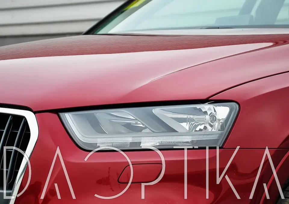 Стекло левой фары из оптического поликарбоната с защитным лаком для замены оригинального стекола фары на Audi Q3 2011-2014 8U