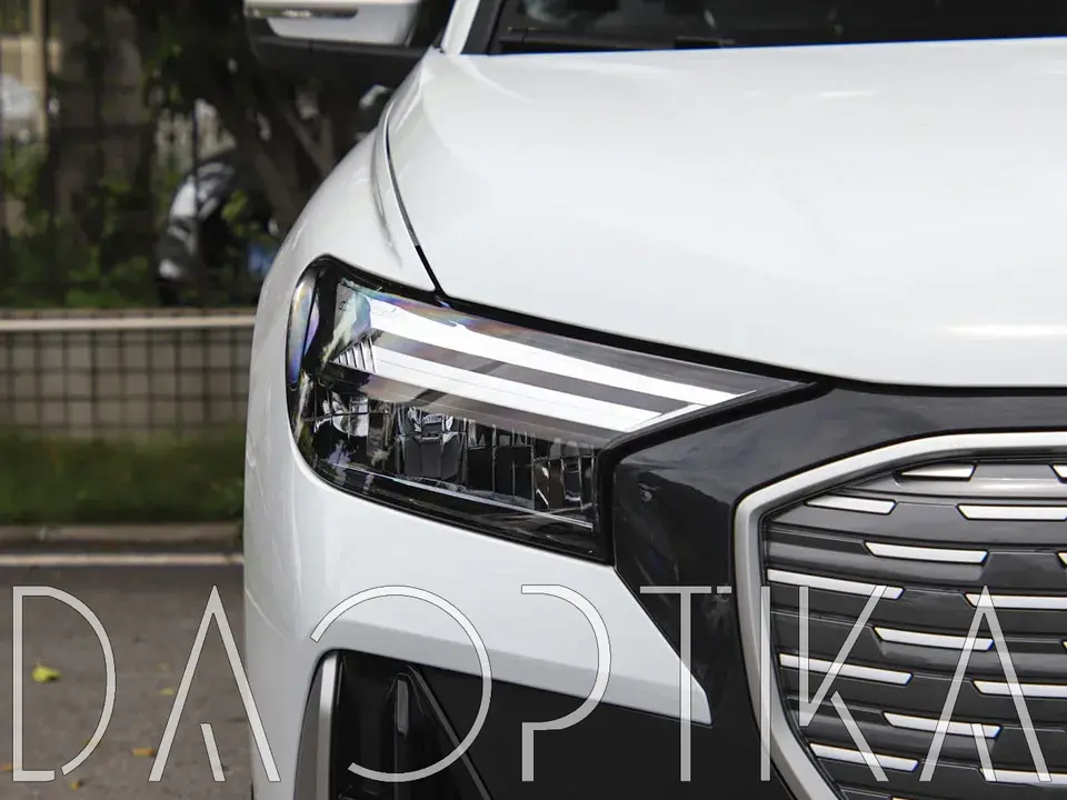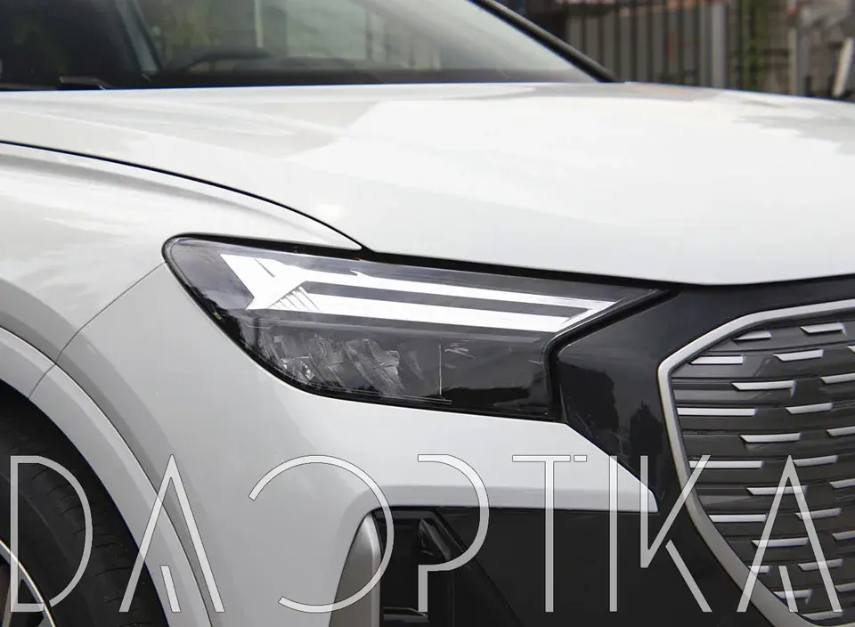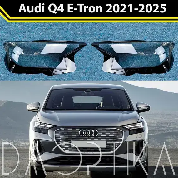 Стекло левой фары из оптического поликарбоната с защитным лаком для замены оригинального стекола фары на Audi Q4 E-Tron 2021-2024