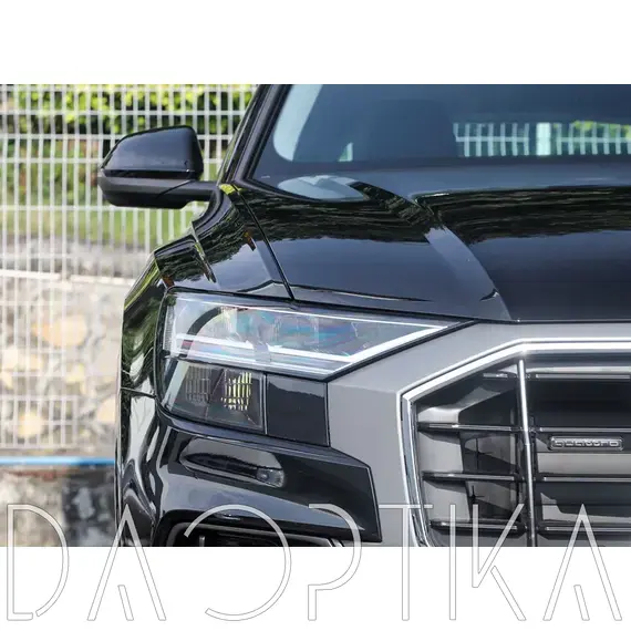 Стекло левой фары из оптического поликарбоната с защитным лаком для замены оригинального стекола фары на Audi Q8 2018-2023 1 поколение
