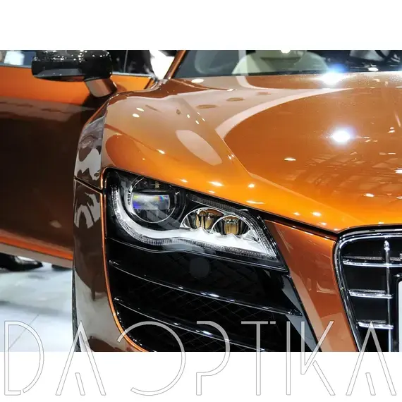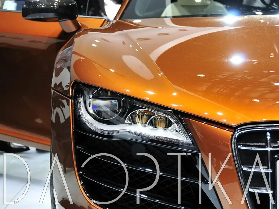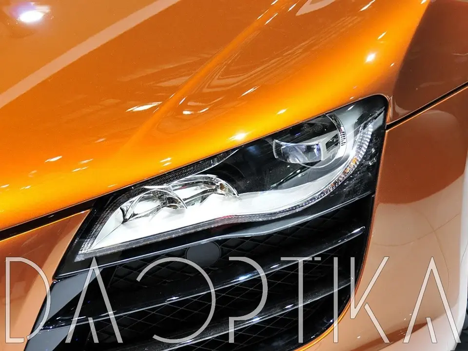 Стекло левой фары из оптического поликарбоната с защитным лаком для замены оригинального стекола фары на Audi R8 2007-2015 1 поколение