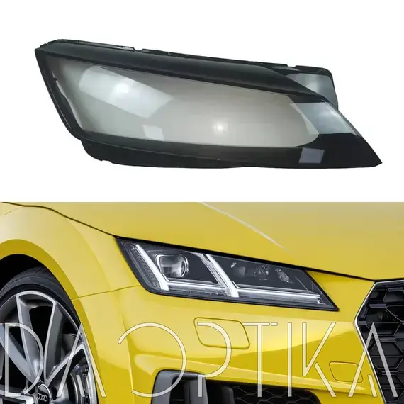 Стекло левой фары из оптического поликарбоната с защитным лаком для замены оригинального стекола фары на Audi TT 2014-2019 8S