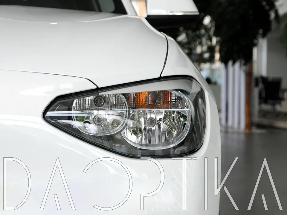 Стекло левой фары из оптического поликарбоната с защитным лаком для замены оригинального стекола фары на BMW 1 series 2011-2015 F20/F21