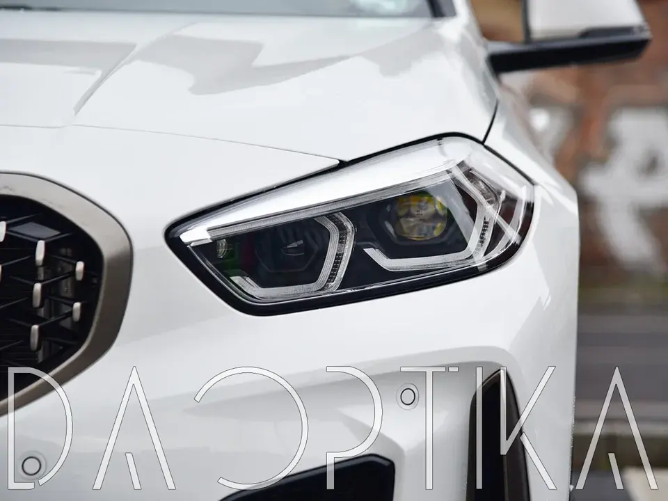 Стекло левой фары из оптического поликарбоната с защитным лаком для замены оригинального стекола фары на BMW 1 series 2019-2024 F40