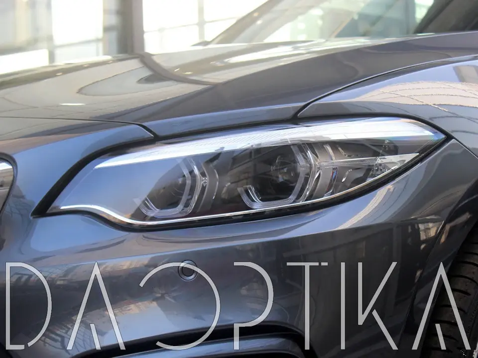 Стекло левой фары из оптического поликарбоната с защитным лаком для замены оригинального стекола фары на BMW 2 series 2014-2017 F22/F23