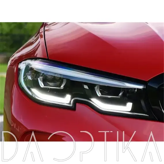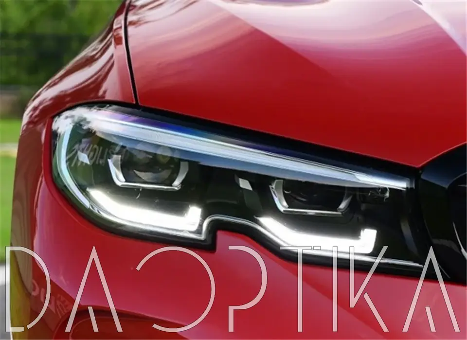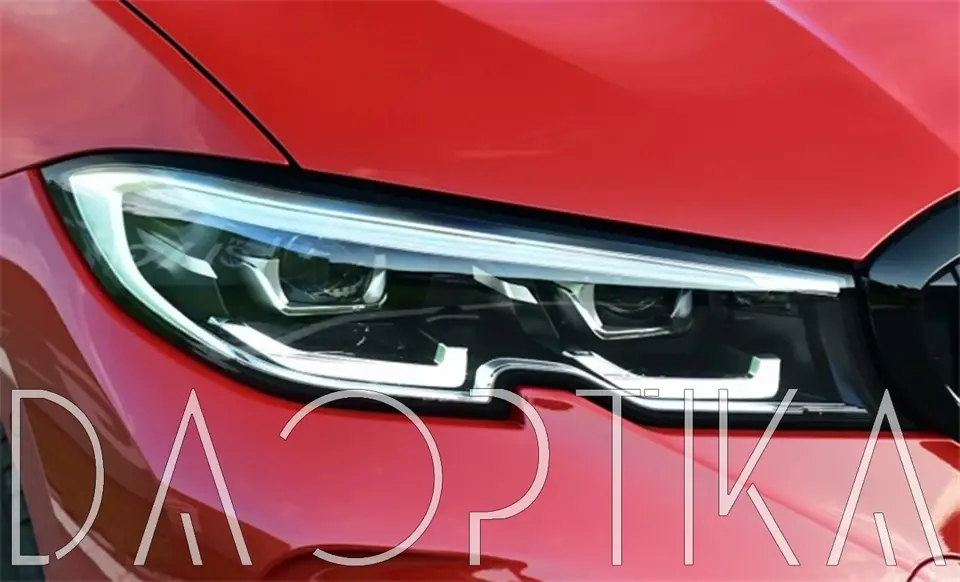 Стекло левой фары из оптического поликарбоната с защитным лаком для замены оригинального стекола фары на BMW 3 series 2018-2022 G20