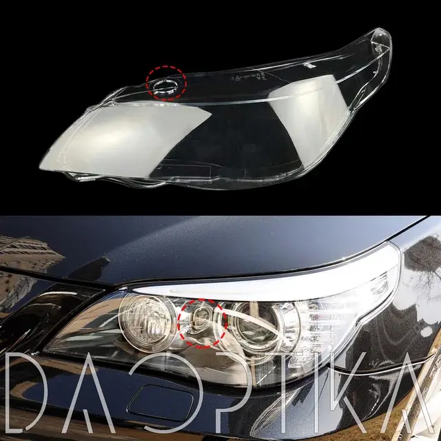 Стекло левой фары из оптического поликарбоната с защитным лаком для замены оригинального стекола фары на BMW 5 series 2007-2010 E60/E61 [рестайлинг]