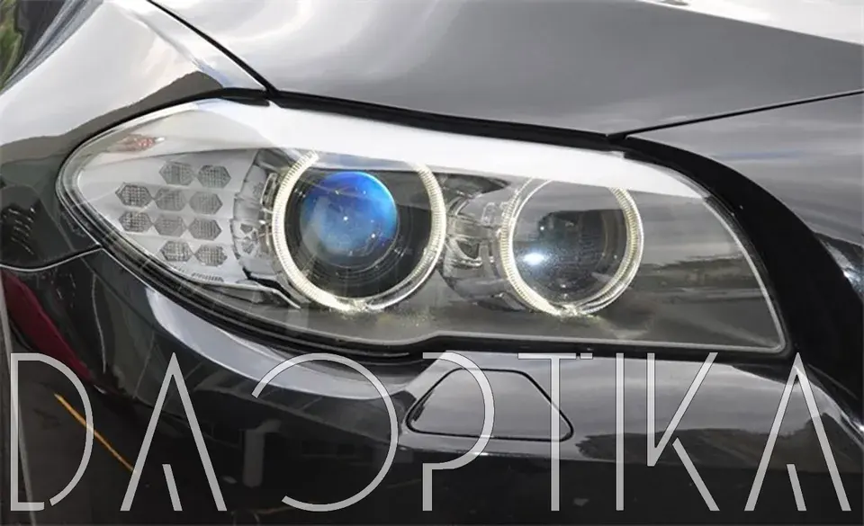Стекло левой фары из оптического поликарбоната с защитным лаком для замены оригинального стекола фары на BMW 5 series 2009-2017 F10/F18