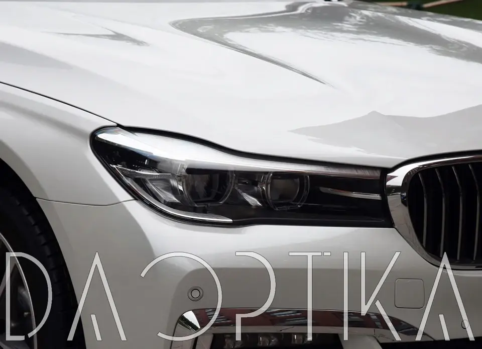 Стекло левой фары из оптического поликарбоната с защитным лаком для замены оригинального стекола фары на BMW 7 series 2015-2019 G11/G12