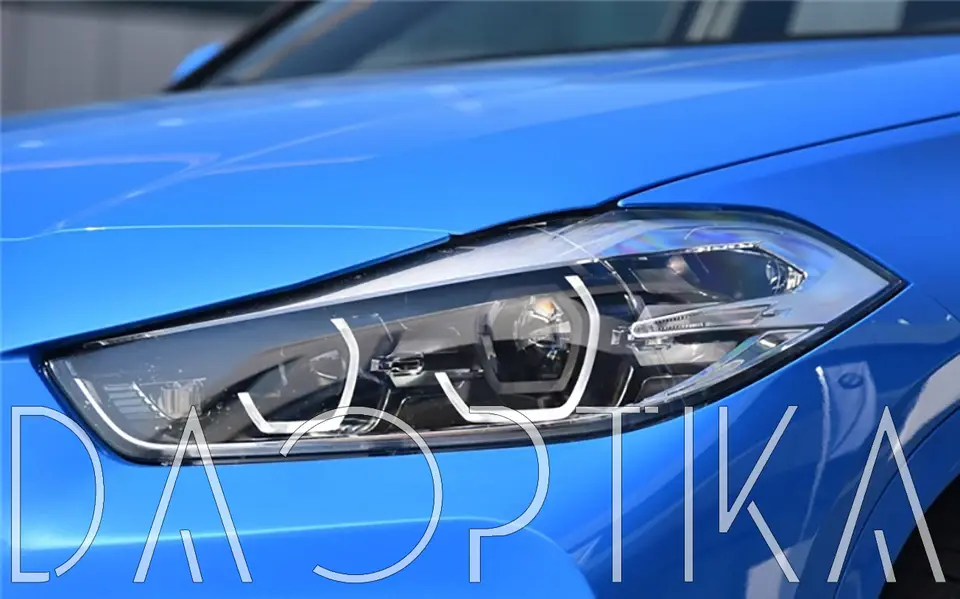Стекло левой фары из оптического поликарбоната с защитным лаком для замены оригинального стекола фары на BMW X2 2017-2023 F39