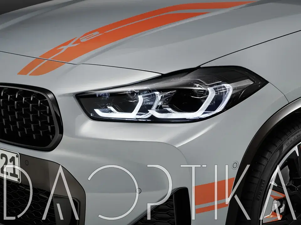 Стекло левой фары из оптического поликарбоната с защитным лаком для замены оригинального стекола фары на BMW X2 2017-2023 F39