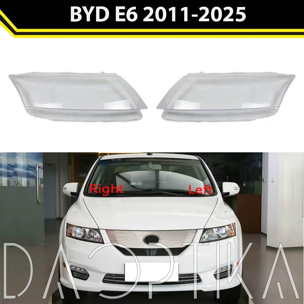 Стекло левой фары из оптического поликарбоната с защитным лаком для замены оригинального стекола фары на BYD E6 2011-2024 1 поколение
