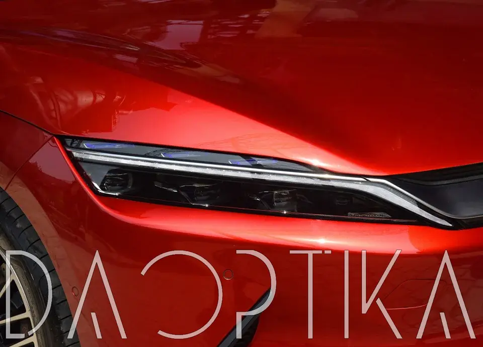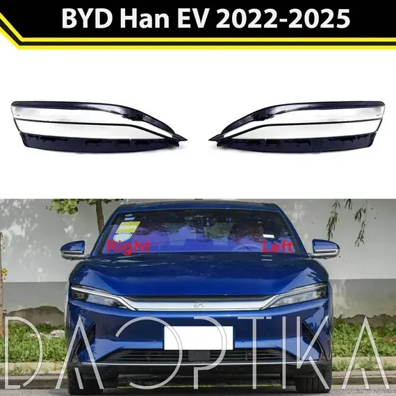 Стекло левой фары из оптического поликарбоната с защитным лаком для замены оригинального стекола фары на BYD Han 2022-2024 1 поколение [рестайлинг]