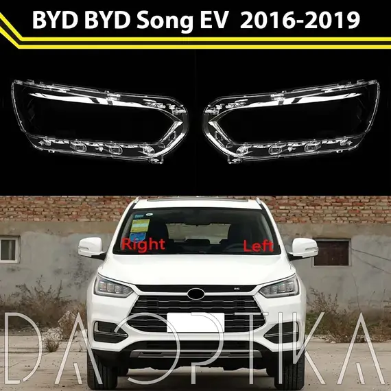 Стекло левой фары из оптического поликарбоната с защитным лаком для замены оригинального стекола фары на BYD Song EV 2016-2019