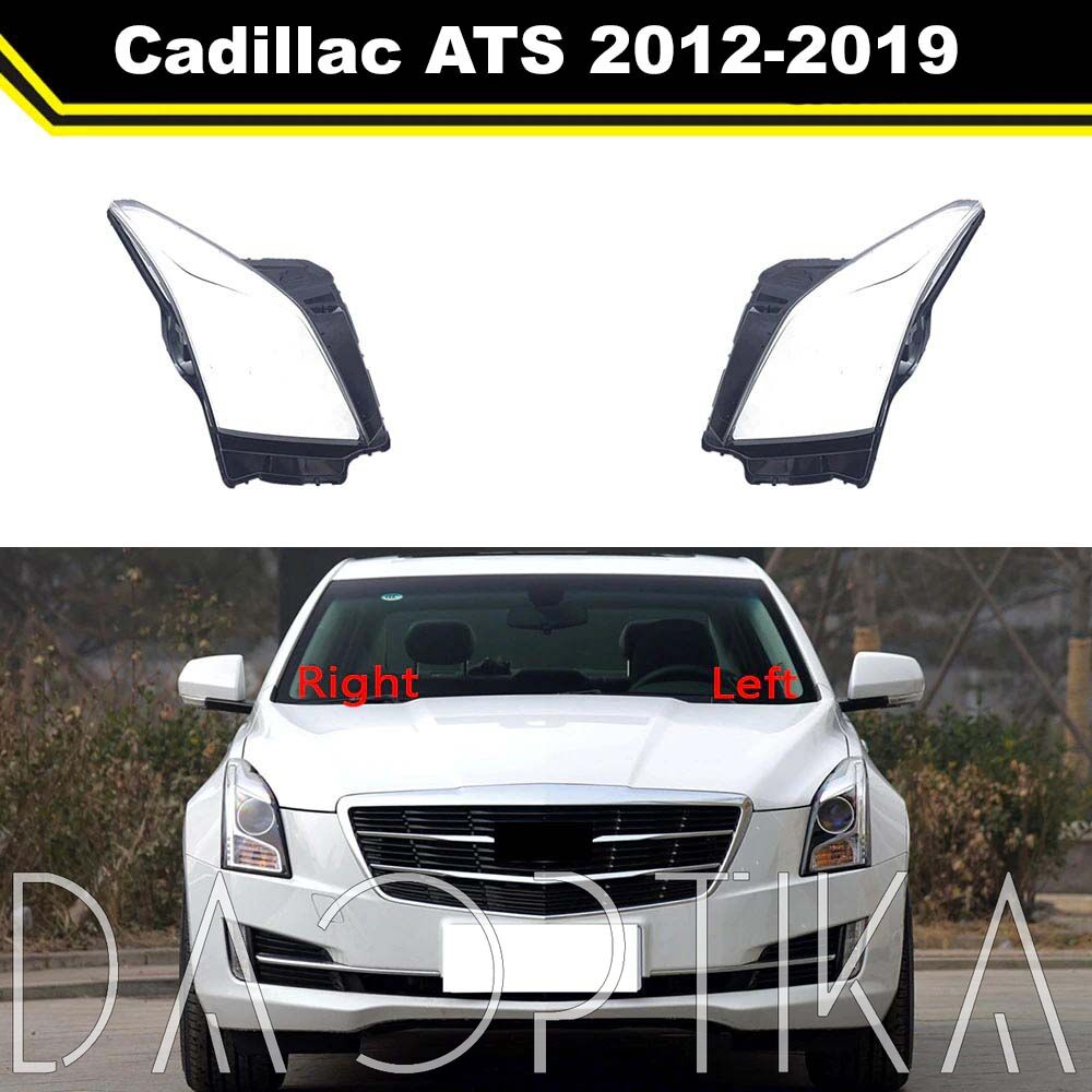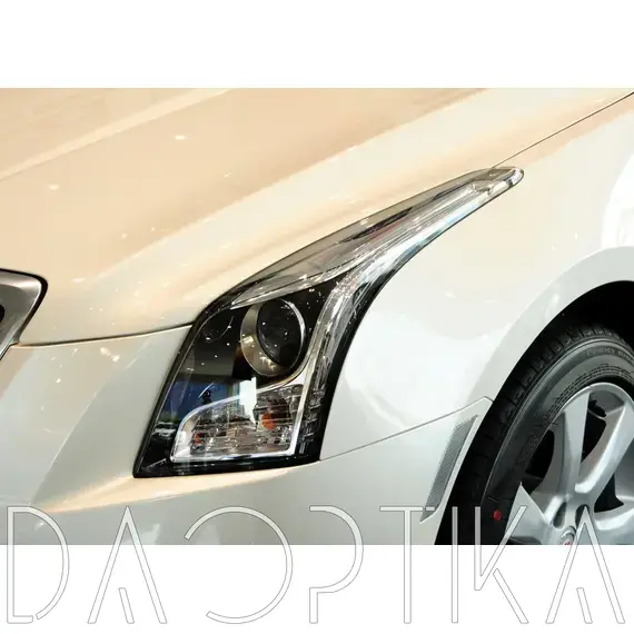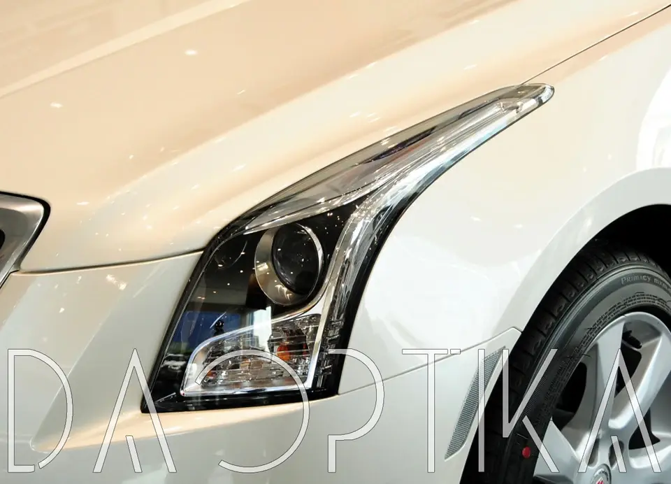 Стекло левой фары из оптического поликарбоната с защитным лаком для замены оригинального стекола фары на Cadillac ATS 2012-2019 1 поколение