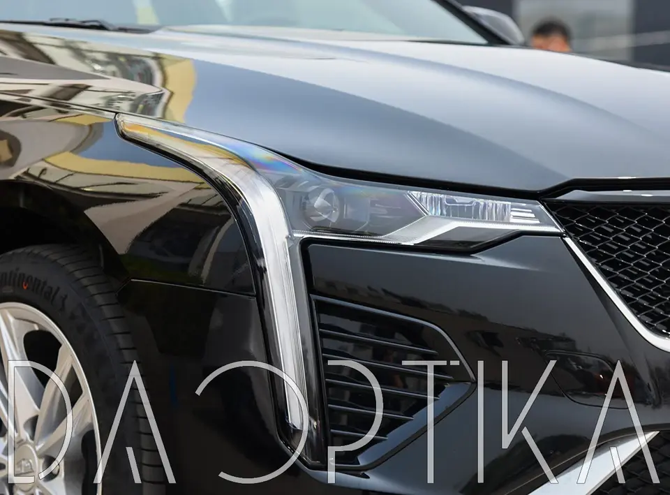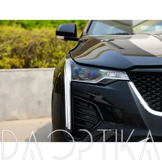 Стекло левой фары из оптического поликарбоната с защитным лаком для замены оригинального стекола фары на Cadillac CT4 2019-2024 1 поколение