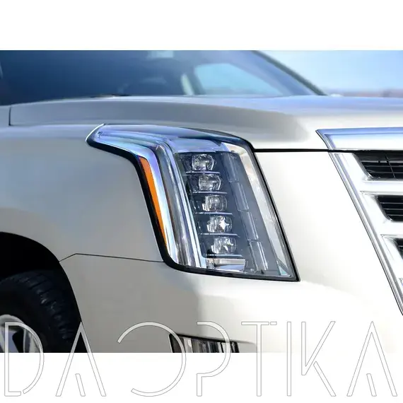 Стекло левой фары из оптического поликарбоната с защитным лаком для замены оригинального стекола фары на Cadillac Escalade 2014-2020 4 поколение