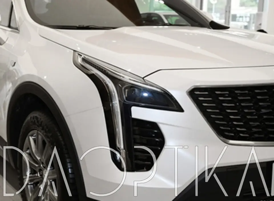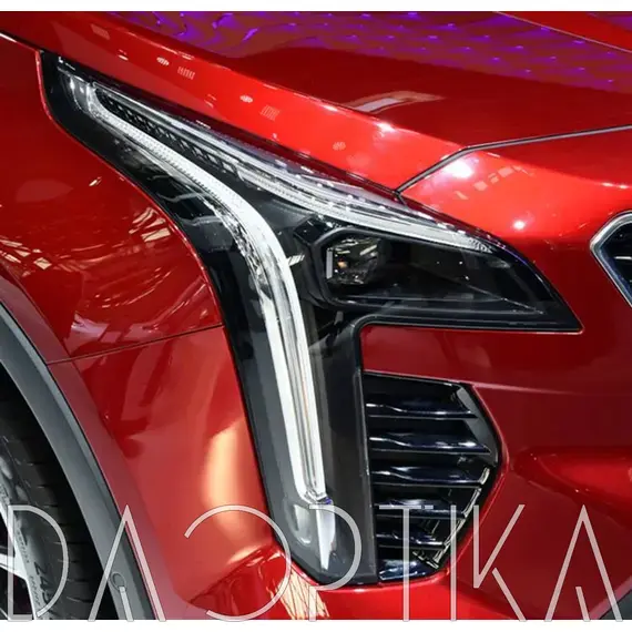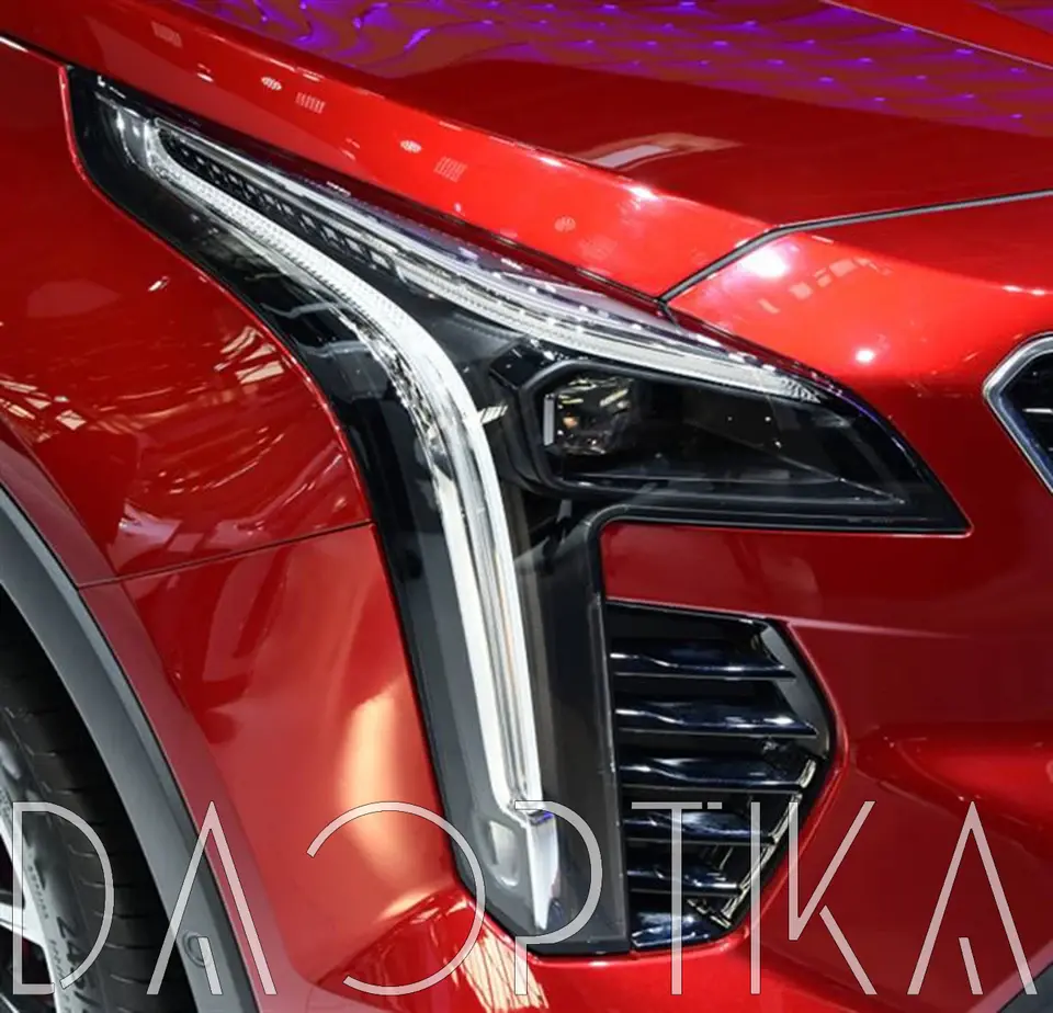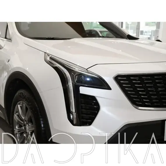 Стекло левой фары из оптического поликарбоната с защитным лаком для замены оригинального стекола фары на Cadillac XT4 2018-2023 1 поколение