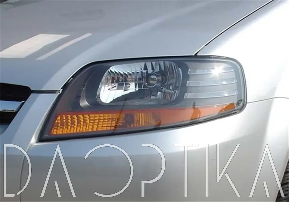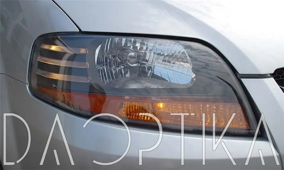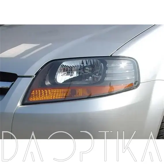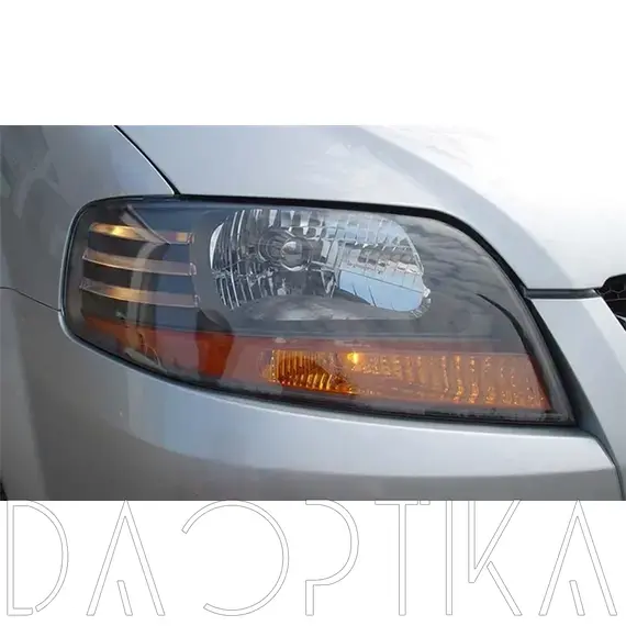 Стекло левой фары из оптического поликарбоната с защитным лаком для замены оригинального стекола фары на Chevrolet Aveo 2002-2011 T200