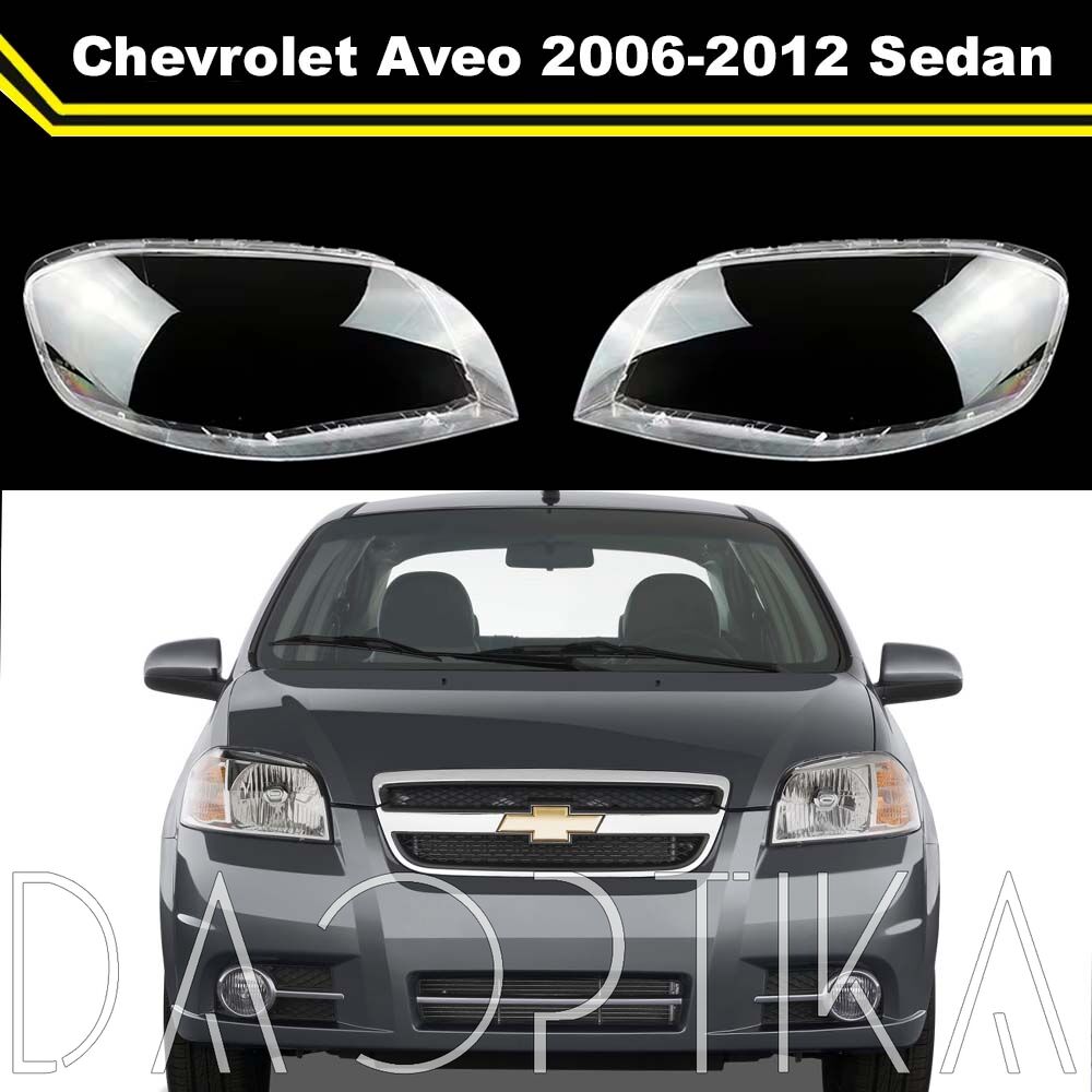 Стекло левой фары из оптического поликарбоната с защитным лаком для замены оригинального стекола фары на Chevrolet Aveo 2006-2012 T250 [рестайлинг]